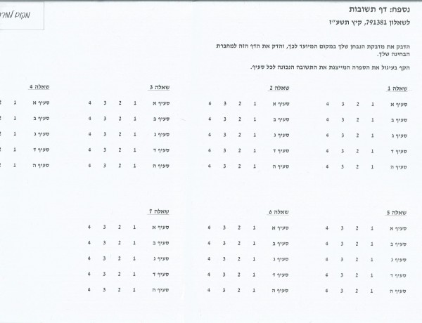 החל משנת 2019 - התלמידים עונים על השאלון עצמו של הבחינה ולא על דף התשובון! שימו לב!